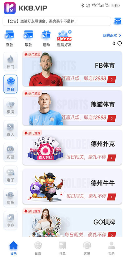 KK8体育涵盖了丰富多样的体育彩票种类,满足了不同彩民的需求。无论是传统的足球彩票、篮球彩票,还是新兴的电竞彩票等,都能在平台上找到相应的投注选项。